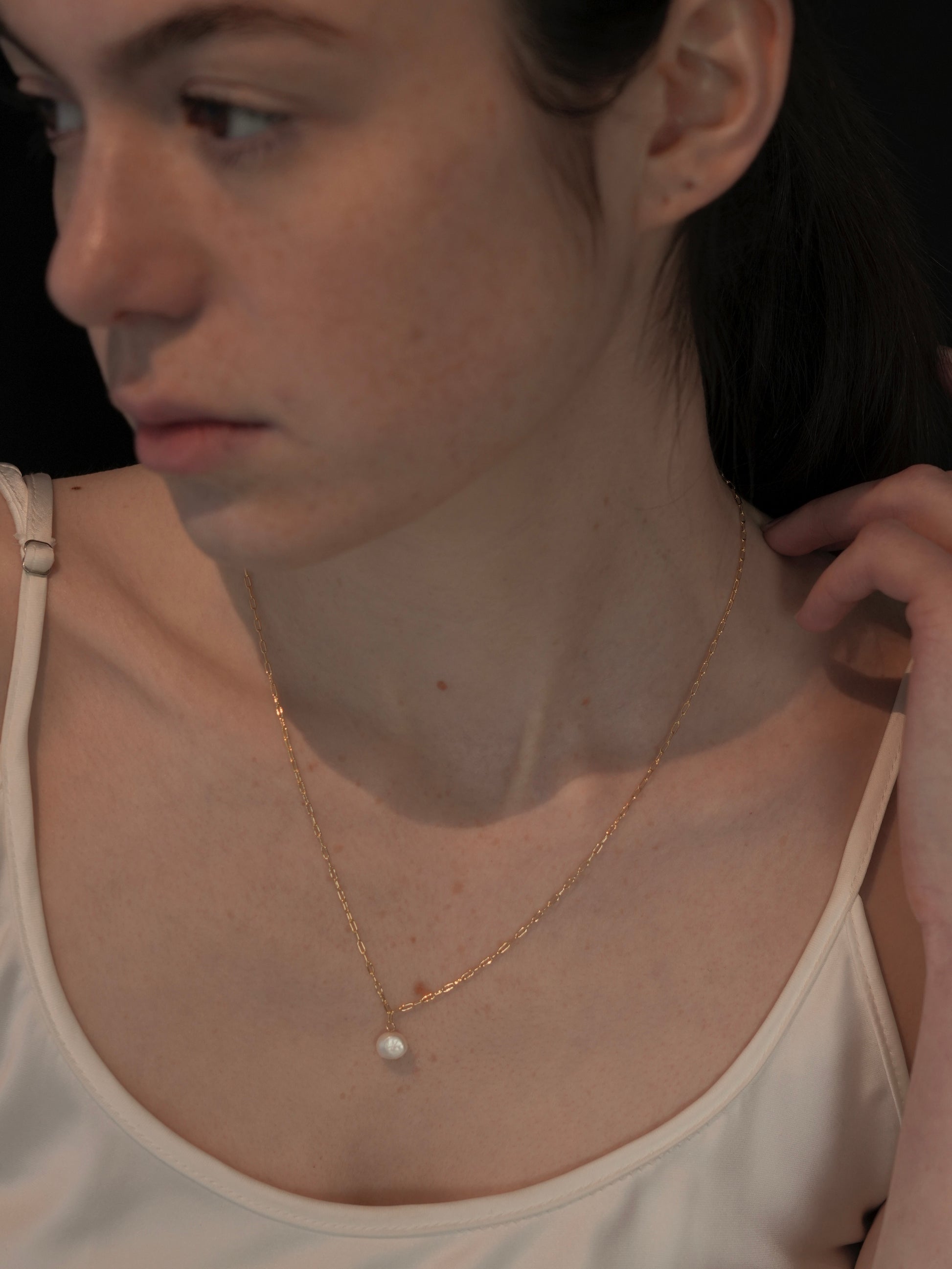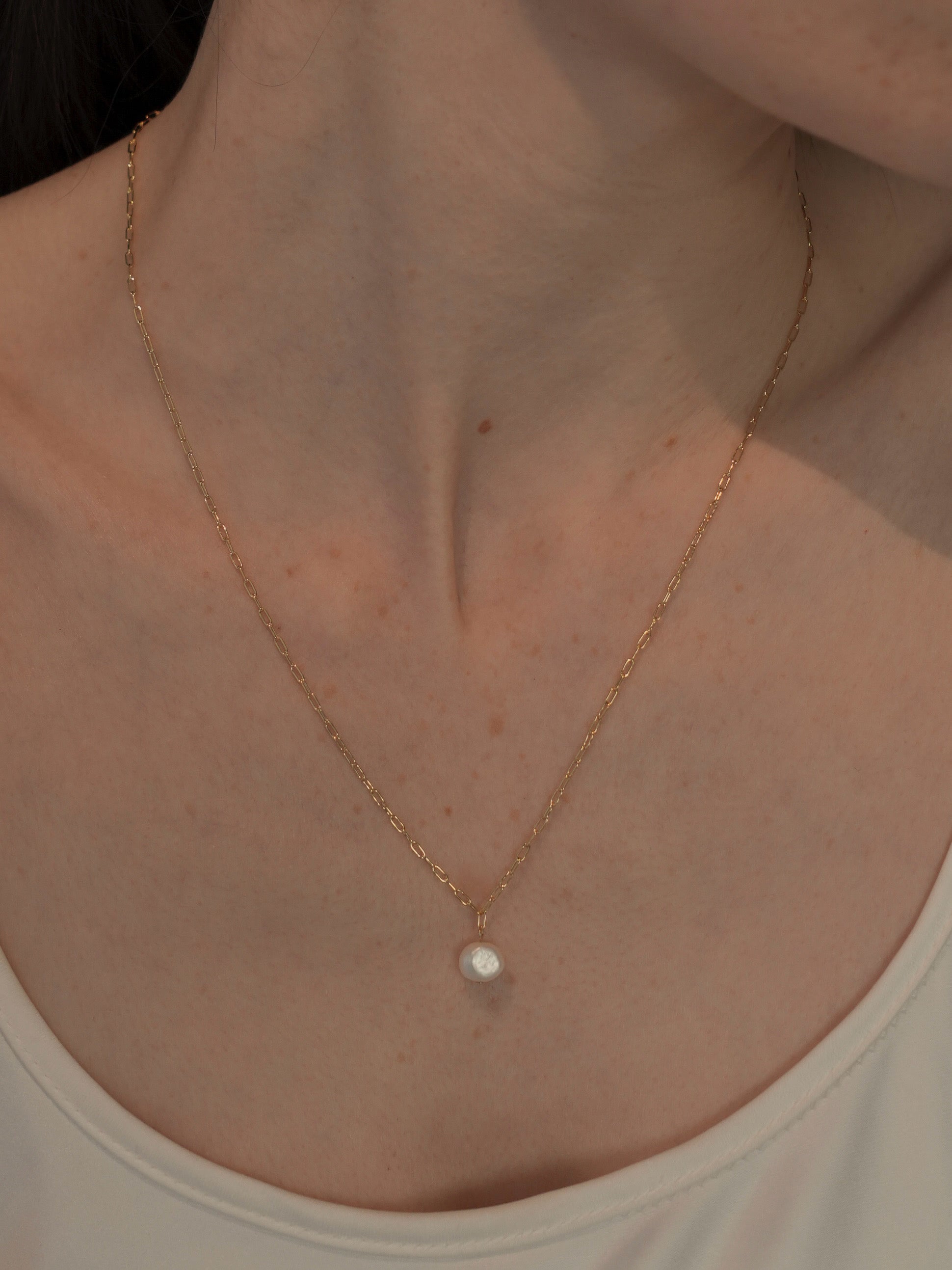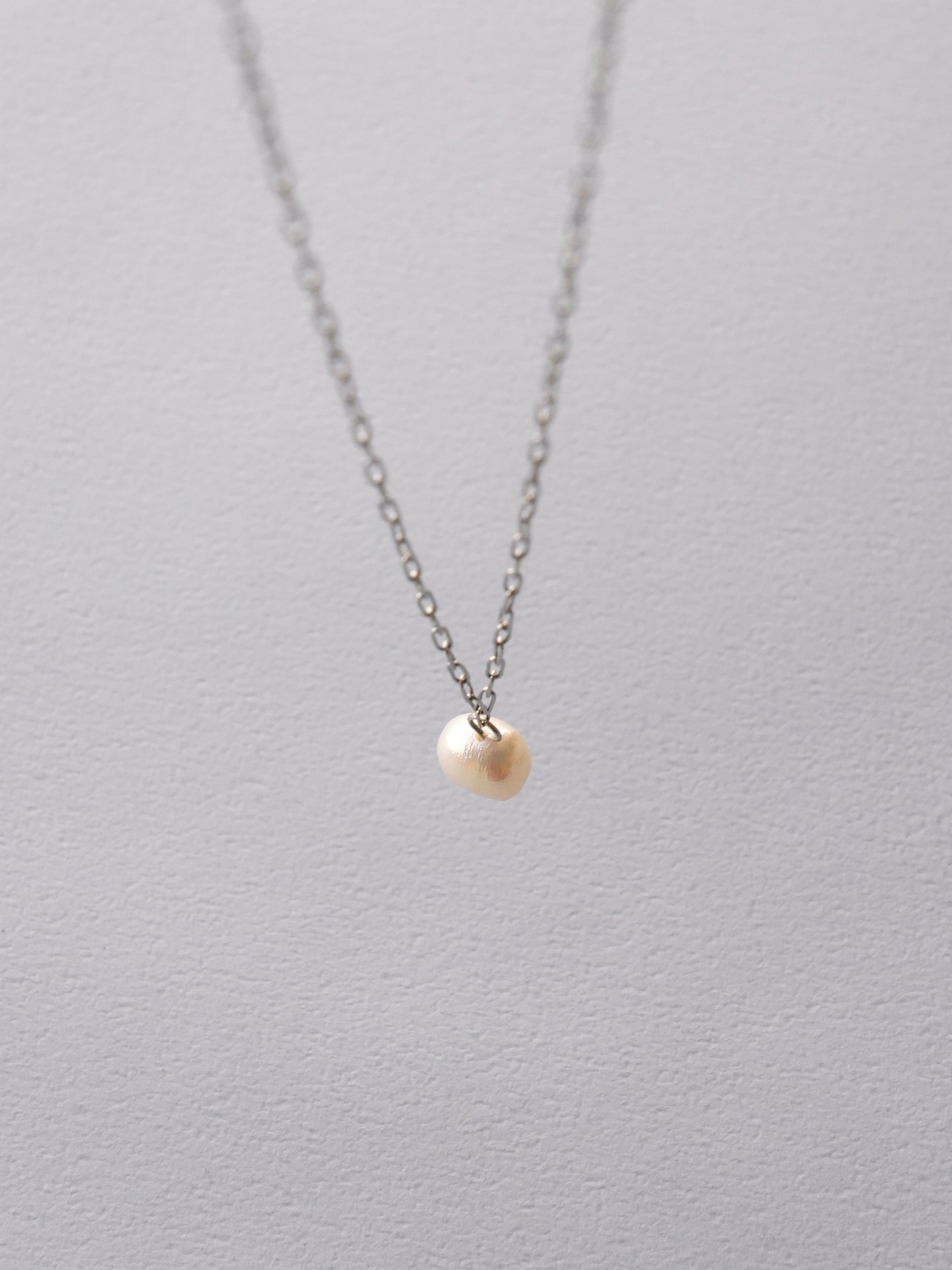 小ぶりな淡水パールがあしらわれたネックレス。